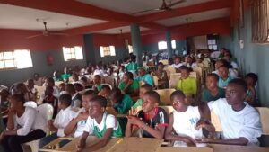 At exactly 11:00am, all students assembled in the school hall with the coordination of the teachers. The event started with an open prayer then the National anthem and pledge which were led by two sonorous junior and senior students. Next, one of the English teaching staff, exhorted the audience on “the relevance of the past heroes’ labour”. She spoke on how the sacrificial service of these heroes who caused a triumph for Nigeria from the agonized slavery period and encouraged the young people to use the advantages they have to help the lives of others and to keep believing in Nigeria because until one believes in a nation, it would be hard to prosper in that nation.